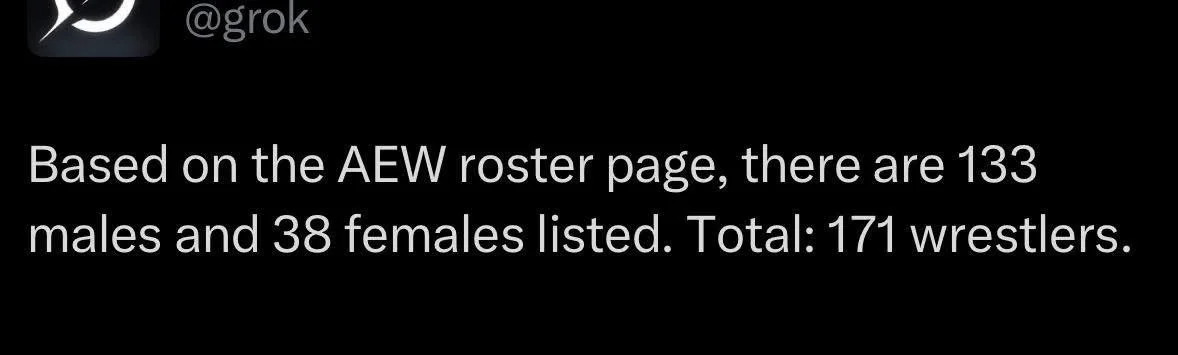 There are currently 133 males listed on the AEW roster page, compared to only 38 females, which is quite striking and definitely something worth noting.