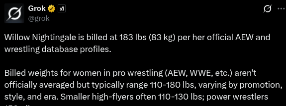 But Willow Nightingale jumps on her Black Girl Wrestling sob session and declares: “When people attack me, it is almost — I won’t say almost always — it is always misogyny, racism, or fatphobia. Those are attacks on me, the person who steps into those sparkly boots.”