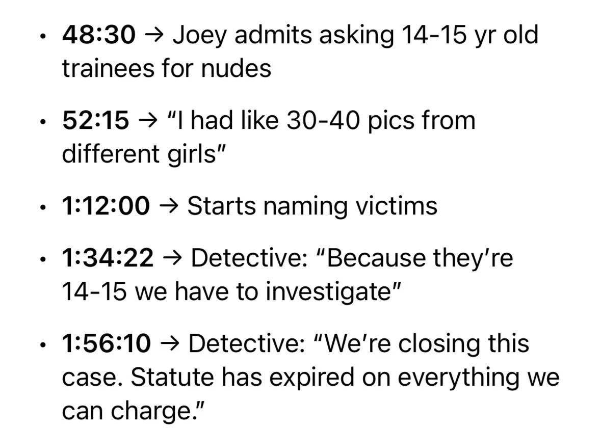 These are main points from a now-deleted YouTube video with the police and Joey. It's not surprising this often happens with these PW pedo creeps—they know exactly what they're doing.
