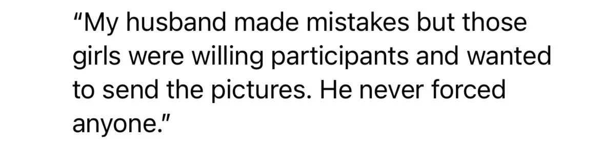 This was a now-deleted Facebook post from Nicole Welcome, Joey’s wife. In it, she defended her husband’s disturbing photos of underage girls.