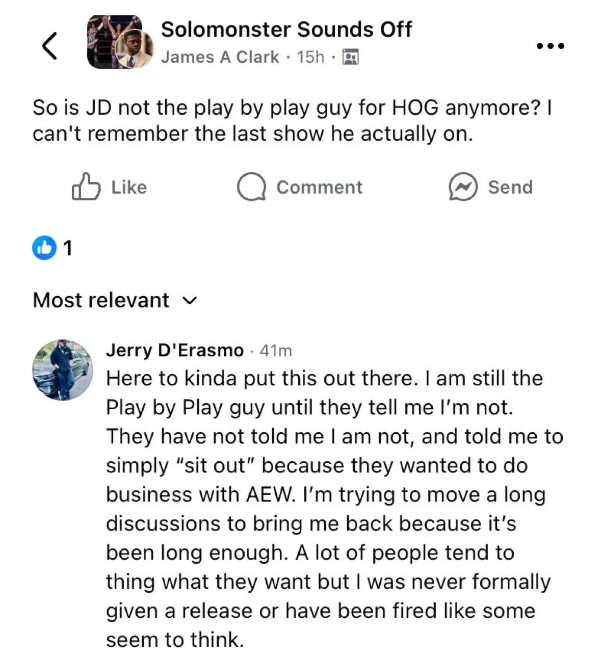 The real issue revolves around JD being removed from the HOG commentary team, a decision that has clearly upset him. His frustration remains evident, as demonstrated in the statement above.