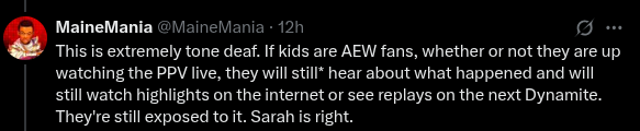 They’re not generally known as a hardcore wrestling company. That style is mostly linked to John Moxley. So, should parents tell their kids not to watch John Moxley?