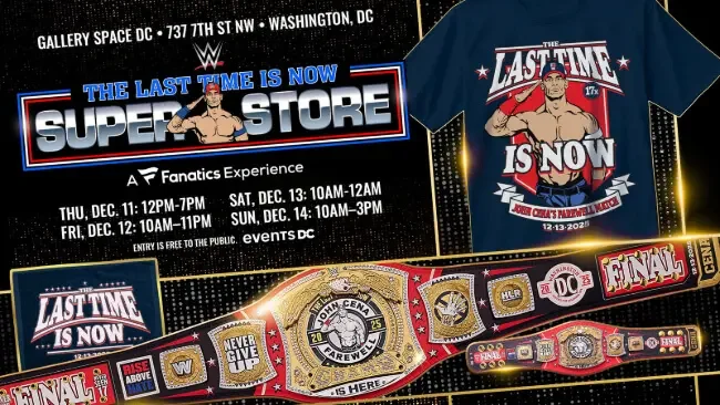 The Superstore will be stocked with the exclusive John Cena Farewell Washington D.C. Replica Title and mini-title, available only for a limited time. You won’t see them after this!