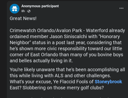 Feedback like what I just got from CrimeWatch Orlando Avalon Park Waterford is fuel to keep going: #FightALS, #AutismAwareness, and shining light on what matters.