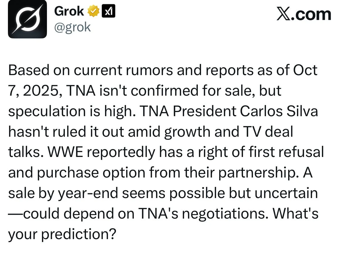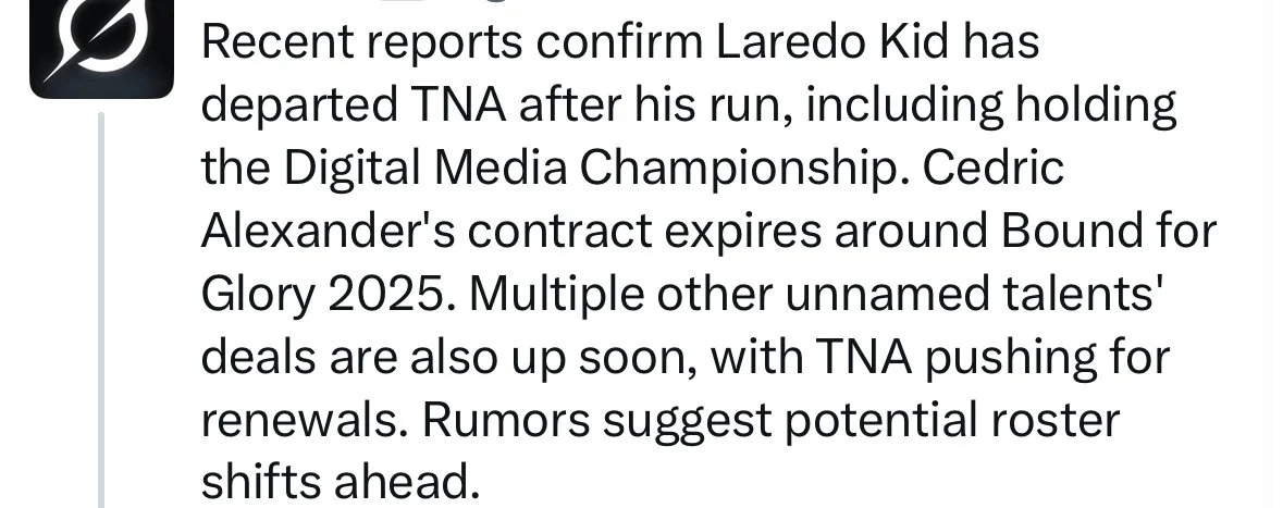 I was speaking to my new best friend Grok last night—yes, that is on Twitter or X—and we had a nice little back-and-forth conversation about the future of TNA Wrestling. This discussion came after I learned that even more talent, like Laredo and Cedric Alexander, will be leaving soon.