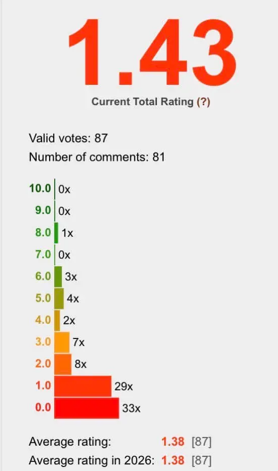 But a 1.43 average rating? Come on. Look at the vote breakdown:
