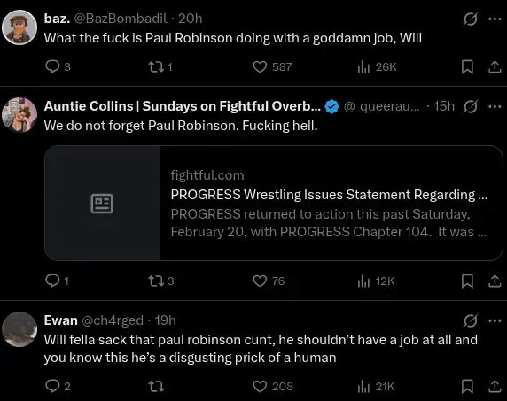 AEW’s Will Ospreay dropped a big thank-you thread after EVE’s Wrestle Queendom 8. He shouted out his co-producers: Michael Oku, Nina Samuels… and Paul Robinson. Posted the photos (including the backstage trio pic) and everything.